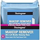 Neutrogena Makeup Remover Wipes Micellar Alcohol-Free Face Towelettes Remove Waterproof Mascara & Oil, Compostable 100% Plant-Based Cloth, Dermatologist & Ophthalmologist Tested, Twin Pack 2 x 25 ct